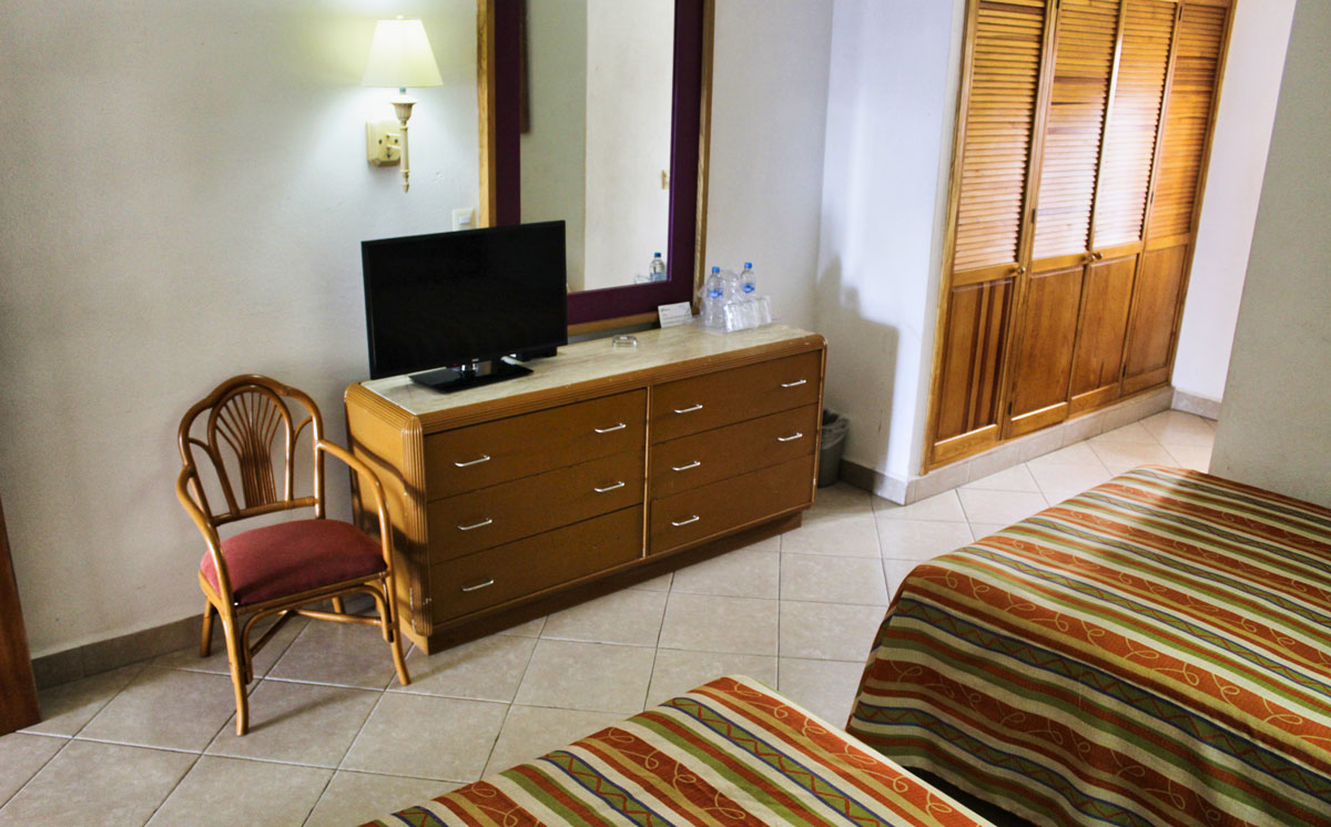 Esta habitación cuenta con dos camas, ventilador de techo, caja de seguridad en el armario,